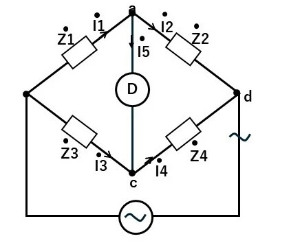 図では、ab間のインピーダンスをZ1、電流をI1とし、同様に各辺のインピーダンスと電流を記述しています。