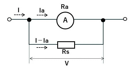 電流計と分流器に加わる電圧は等しいため、次式が得られます。